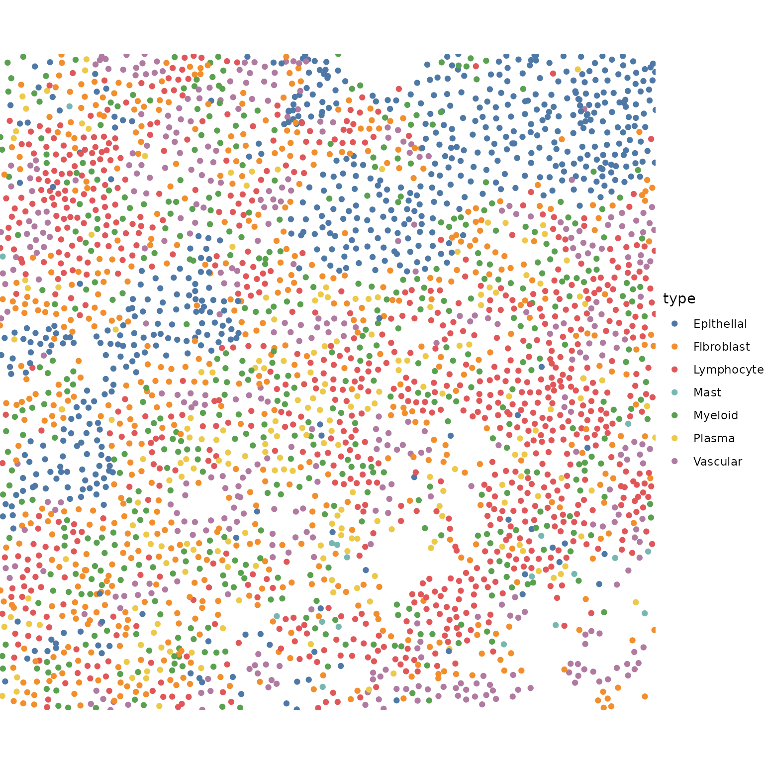 #> Epithelial Fibroblast Lymphocyte Mast Myeloid Plasma Vascular
